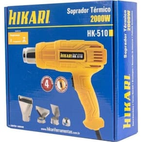 Soprador Térmico 220v 2000w HK-510 Hikari O Soprador Térmico HK-510 Hikari é uma ferramenta que produz ar quente para diversas aplicações. Indicado para profissionais que trabalham com aplicação de películas, remoção de adesivos, modelagem rápida de canos de PVC, termo encolhimento em protetores de cabos, secagem rápida e remoção de tintas, artesanatos, atividades relacionadas à moldagem de materiais plásticos e muito mais.