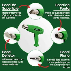Soprador Térmico TRATO - TSOP2000-127V Kit Soprador Térmico TSOP2000 TRATO O Kit Soprador Térmico TRATO TSOP2000 é a solução completa para suas necessidades de aquecimento e remoção de materiais. Este kit versátil inclui uma maleta robusta, um soprador térmico potente, 4 bocais e 1 raspador, proporcionando uma ampla gama de utilidades para o seu dia a dia. Com acessórios como bocal ponta, bocal superfície, bocal deflexão e bocal plano, você poderá realizar diversas aplicações com facilidade e precisão. O raspador triangular é ideal para remoção de tintas e adesivos plásticos, além de ser perfeito para a aplicação de película térmica e soldagem de canos de PVC. Com o Kit Soprador Térmico TRATO TSOP2000, você terá todas as ferramentas necessárias para realizar seus projetos com eficiência e praticidade. Seja para trabalhos profissionais ou domésticos, este kit oferece a qualidade e funcionalidade que você precisa. Especificações Técnicas: Modelo: TSOP2000 Voltagem: 127V Frequência: 60 Hz Peso Bruto: 1,6 Kg Seletor de Potência e Temperatura: I e II Voltagem 127V: Nível I: 1500 W, 300 C, 300 l/min Nível II: 1500 W, 550 C, 500 l/min ITENS INCLUSOS 01 Soprador térmico TSOP2000 01 Raspador triangular 01 Bocal de ponta 01 Bocal de superfície 01 Bocal defletor 01 Bocal plano Bem vindos à MAGAZINE ROMA Dúvidas Frequentes: 1 - Os produtos são novos Tem 3 - Como são realizadas as entregas Vocês entregam em todo o país 4 - Como faço para acompanhar do envio 5 - Como realizo o pagamento 6- Posso devolver o produto Marca: Não Informado Ean: 7898632339901