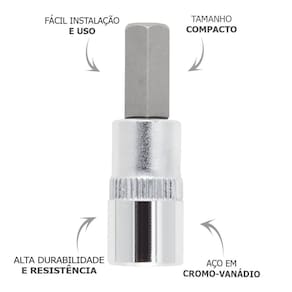 Perguntas e Respostas: P: O soquete é compatível com quais ferramentas? R: O Soquete Allen 1/4'' x 4mm Gedore Red é compatível com chaves e ferramentas de encaixe 1/4''.