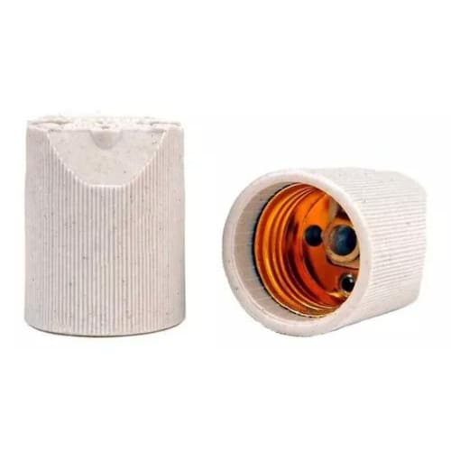 Soquete sem aba, em cerâmica com contatos em latão para Lâmpadas Base E27, halogenas, Fluorescentes e Led, muito utilizado em plafons, abajus, varal de luzes ou varal de lâmpadas entre outras aplicações .