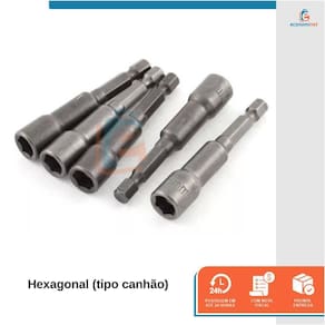 Os Soquetes Canhão são indicados para afrouxar, apertar ou desapertar parafusos sextavados. Muito utilizado em parafusos autobrocantes, auxiliando em diversos tipos de serviços ou trabalhos. CARACTERÍSTICAS TÉCNICAS:Material: Aço cromo vanádioMedidas: 11mm diâmetro do encaixe x 65mm comprimento total Modelo: Bits soquete magnéticoTipo: Hexagonal tipo canhão Marca: StarferRef.: 3480356