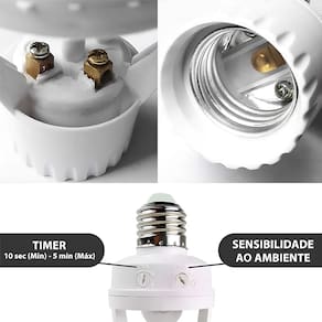 Especificações Técnicas: - Detecção de Movimento: 360 graus; - Distância de Detecção: Até 6 metros; - Tempo de Retardo: 10 segundos a 5 minutos (ajustável); - Luz Ambiente: 3 a 2000 Lux (ajustável); - Potência Máxima: 60W; - Compatibilidade: Lâmpadas padrão E27; - Alimentação: 10-240V/AC, 50/60Hz; - Material: Alta durabilidade, ideal para uso diário; - Dimensões e Instalação: Altura recomendada de 2 a 3,5 metros.
