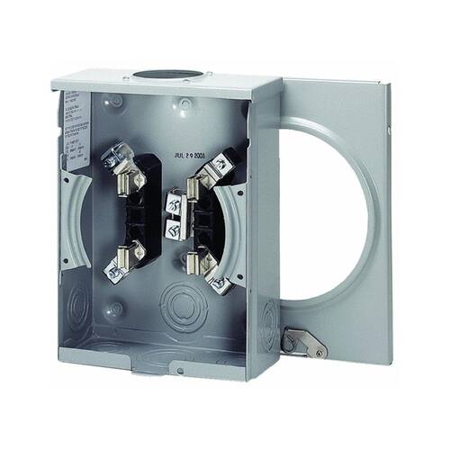 Soquete de medidor profissional de qualidade preferida para serviço monofásico contínuo de até 125 A, 600 V, 3 fios. Design de serviço externo, sem anel, 4 mandíbulas, aéreo ou subterrâneo com conector de fio terra e sem desvio. Aço G90 de alta qualidade, revestimento de poliéster. Hub não incluído. 23 x 30 x 12,7 cm. Listado pela UL. Não. UTRS101BE: Classificação de tensão: 600V, Classificação de corrente de amperagem: 125A, Número de mandíbulas: 4 mandíbulas, Tamanho: 30,5 cm A x 22,9 cm L x 12,7 cm D, Tipo de fecho: Soquete de um metro, listado na UL? : Sim