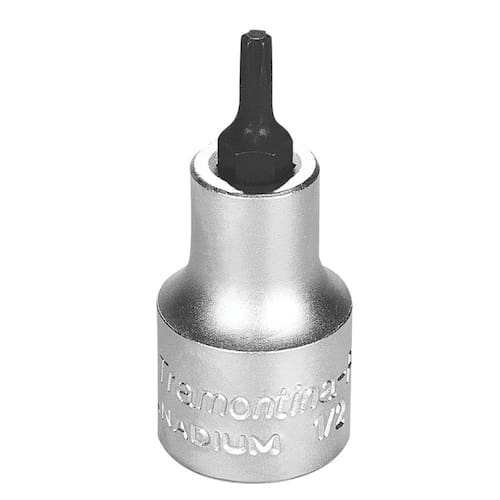 Os soquetes com ponta da Tramontina PRO são produzidos e testados para garantir total segurança e agilidade na colocação e retirada de parafusos com perfis internos. Escolha o tamanho e perfil ideal para a sua necessidade e mãos à obra. Orientações Soquete forjado em aço cromo vanádio e temperado. Ponteira em aço ferramenta S2.Soquete com acabamento cromado.Ponteira fosfatizada.Suporte plástico.Os soquetes são submetidos a testes rigorosos de torque e de dureza para atender a norma DIN 1711-1.Afrouxar e apertar parafusos trafix.As ferramentas são produzidas e testadas conforme normas específicas. Observações Use óculos, luvas e outros equipamentos de proteção individual (EPIs) de acordo com a tarefa a ser executada. Selecione o tamanho do soquete conforme a bitola do parafuso ou porca. Para operações com parafusadeiras pneumáticas ou elétricas, use soquetes de impacto. Inspecione os soquetes antes de sua utilização. Soquetes que apresentam trincas ou desgaste excessivo devem ser substituídos. Armazene em local limpo e seco. Características Gerais EAN13 7891114071504 DUN14 17891114071501 NCM 8204.20.00 Peso Líquido 0,0800 kg. Peso Bruto 0,0800 kg. Metragem 0,000150 m³. Dimensões Embalagem (Compr. X Larg. X Alt.) 120x 50x 25 mm. Dimensões Produto (Compr. X Larg. X Alt.) 55x 24x 24 mm. Dimensão Extra A 24,0 mm. Dimensão Extra B 55,0 mm. Dimensão Extra C 3,8 mm.