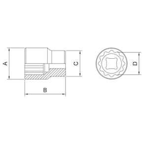 Os soquetes da Tramontina PRO são produzidos com sistema Hyper Drive que melhora o acoplamento do produto ao parafuso ou porca, reduzindo as tensões geradas no aperto e prolongando a sua vida útil. Escolha o tamanho e perfil ideal para a sua necessidade e mãos à obra. Orientações Soquete forjado em aço cromo vanádio e temperado. Acabamento cromado.Perfil Hyper Drive (de cantos arredondados). DIN 3124.Suporte plástico.Um grande avanço na produção dos soquetes é a introdução do conceito "Hyper Drive". Este novo perfil melhora o acoplamento do soquete na porca ou parafuso, reduzindo as tensões geradas no aperto, prolongando a vida do soquete e do elemento de fixação.Os soquetes são submetidos a testes rigorosos de torque e de dureza para atender a norma DIN 1711-1.Afrouxar e apertar parafusos e porcas sextavados.As ferramentas são produzidas e testadas conforme normas específicas. Observações Use óculos, luvas e outros equipamentos de proteção individual (EPIs) de acordo com a tarefa a ser executada. Selecione o tamanho do soquete conforme a bitola do parafuso ou porca. Para operações com parafusadeiras pneumáticas ou elétricas, use soquetes de impacto. Inspecione os soquetes antes de sua utilização. Soquetes que apresentam trincas ou desgaste excessivo devem ser substituídos. Armazene em local limpo e seco. Características Gerais EAN13 7891114025712 DUN14 17891114025719 NCM 8204.20.00 Peso Líquido 0,0300 kg. Peso Bruto 0,0300 kg. Metragem 0,000165 m³. Dimensões Embalagem (Compr. X Larg. X Alt.) 110x 50x 30 mm. Dimensões Produto (Compr. X Larg. X Alt.) 30x 26x 26 mm. Dimensão Extra A 26,0 mm. Dimensão Extra B 30,0 mm. Dimensão Extra C 26,0 mm. Dimensão Extra D 19,1 mm.