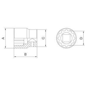 Soquete forjado em aço cromo vanádio e temperado. Acabamento cromado. Perfil Hyper Drive (de cantos arredondados). DIN 3124. Um grande avanço na produção dos soquetes é a introdução do conceito Hyper Drive. Este novo perfil melhora o acoplamento do soquete na porca ou parafuso, reduzindo as tensões geradas no aperto, prolongando a vida do soquete e do elemento de fixação.Os soquetes são submetidos a testes rigorosos de torque e de dureza para atender a norma DIN 1711-1.Afrouxar e apertar parafusos e porcas sextavados.As ferramentas são produzidas e testadas conforme normas específicas.