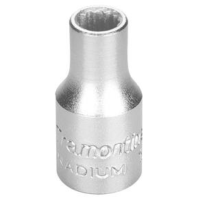 Os soquetes da Tramontina PRO são produzidos com sistema Hyper Drive que melhora o acoplamento do produto ao parafuso ou porca, reduzindo as tensões geradas no aperto e prolongando a sua vida útil. Escolha o tamanho e perfil ideal para a sua necessidade e mãos à obra. Orientações Soquete forjado em aço cromo vanádio e temperado. Acabamento cromado.Perfil Hyper Drive (de cantos arredondados). DIN 3124.Suporte plástico.Um grande avanço na produção dos soquetes é a introdução do conceito "Hyper Drive". Este novo perfil melhora o acoplamento do soquete na porca ou parafuso, reduzindo as tensões geradas no aperto, prolongando a vida do soquete e do elemento de fixação.Os soquetes são submetidos a testes rigorosos de torque e de dureza para atender a norma DIN 1711-1.Afrouxar e apertar parafusos e porcas sextavados.As ferramentas são produzidas e testadas conforme normas específicas. Observações Use óculos, luvas e outros equipamentos de proteção individual (EPIs) de acordo com a tarefa a ser executada. Selecione o tamanho do soquete conforme a bitola do parafuso ou porca. Para operações com parafusadeiras pneumáticas ou elétricas, use soquetes de impacto. Inspecione os soquetes antes de sua utilização. Soquetes que apresentam trincas ou desgaste excessivo devem ser substituídos. - Armazene em local limpo e seco. Características Gerais EAN13 7891114132007 DUN14 17891114132004 NCM 8204.20.00 Peso Líquido 0,0250 kg. Peso Bruto 0,0250 kg. Metragem 0,000089 m³. Dimensões Embalagem (Compr. X Larg. X Alt.) 85x 70x 15 mm. Dimensões Produto (Compr. X Larg. X Alt.) 25x 12x 12 mm. Dimensão Extra A 10,5 mm. Dimensão Extra B 12,0 mm. Dimensão Extra C 25,0 mm. Dimensão Extra D 7,0 mm.