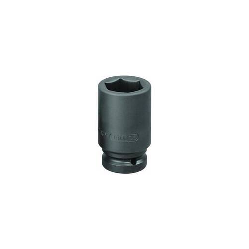 Aço-liga de alta resistência mecânica. Acabamento escurecido, bitola: 3.1/8 possui acabamento fosfatizado. Soquete extrarresistente, para trabalhar com máquinas de impacto, com encaixe quadrado externo 25,4 mm 1 , conforme DIN 3121 - G 25, ISO 1174. Indicado para parafusos e porcas com perfil de encaixe sextavado externo. Possui alojamento para utilização de pino e anel de segurança, a serem adquiridos à parte, de acordo com o modelo.