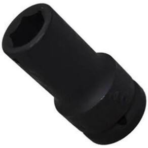 Aço-liga de alta resistência mecânica. Acabamento escurecido. Soquete extrarresistente, para trabalhar com máquinas pneumáticas e elétricas, com encaixe a 19,05 mm 3/4 , conforme DIN 3121 - G 20, ISO 1174. Apresenta alojamento para pino e anel de segurança.