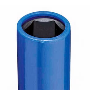 - Características: Encaixe Quadrado: 1/2". Material: Fabricado em aço cromo-molibdênio, garantindo alta durabilidade e resistência ao impacto. Acabamento: Superfície fosfatada, que protege contra corrosão. Proteção de Plástico: Evita danos às rodas de liga leve durante o uso. Codificação por Cores: Facilita a identificação do soquete correto (azul para 17 mm). Indicado para trabalhos com rodas de liga leve, preservando o acabamento das peças. Resistente a condições de uso intenso em oficinas mecânicas e industriais. Embalagem prática e apropriada para autosserviço.