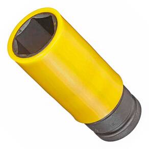 - Características: Encaixe Quadrado: 1/2". Material: Fabricado em aço cromo-molibdênio, garantindo alta durabilidade e resistência ao impacto. Acabamento: Superfície fosfatada, que protege contra corrosão. Proteção de Plástico: Evita danos às rodas de liga leve durante o uso. Codificação por Cores: Facilita a identificação do soquete correto (amarelo para 19 mm). Indicado para trabalhos com rodas de liga leve, preservando o acabamento das peças. Resistente a condições de uso intenso em oficinas mecânicas e industriais. Embalagem prática e apropriada para autosserviço.