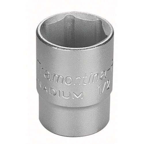 Soquete Sextavado Em Aço Cromo Vanádio 25 Mm - Encaixe 1/2" Tramontina Pro Tramontina Soquete Sextavado em Aço Cromo Vanádio 25 mm - Encaixe 1/2 Tramontina PRO Tramontina - Os soquetes da Tramontina PRO são produzidos com sistema Hyper Drive que melhora o acoplamento do produto ao parafuso ou porca, reduzindo as tensões geradas no aperto e prolongando a sua vida útil. Escolha o tamanho e perfil ideal para a sua necessidade e mãos à obra.OrientaçõesUm grande avanço na produção dos soquetes é a introdução do conceito Hyper Drive. Este novo perfil melhora o acoplamento do soquete na porca ou parafuso, reduzindo as tensões geradas no aperto, prolongando a vida do soquete e do elemento de fixação. Soquete forjado em aço cromo vanádio e temperado. Acabamento cromado. DIN 3124. Os soquetes são submetidos a testes rigorosos de torque e de dureza para atender a norma DIN 1711-1. Afrouxar e apertar parafusos e porcas sextavados. As ferramentas são produzidas e testadas conforme normas específicas. ObservaçõesUse óculos, luvas e outros equipamentos de proteção individual (EPIs) de acordo com a tarefa a ser executada. Selecione o tamanho do soquete conforme a bitola do parafuso ou porca. Para operações com parafusadeiras pneumáticas ou elétricas, use soquetes de impacto. Inspecione os soquetes antes de sua utilização. Soquetes que apresentam trincas ou desgaste excessivo devem ser substituídos. - Armazene em local limpo e seco.Características GeraisEAN137891114133080DUN1417891114133087NCM8204.20.00Peso Líquido0,1600 kg.Peso Bruto0,1600 kg.Metragem0,000200 m.Dimensões Embalagem (Compr. X Larg. X Alt.)100x 50x 40 mm.Dimensões Produto (Compr. X Larg. X Alt.)42x 34x 34 mm.Dimensão Extra A33,2 mm.Dimensão Extra B42,0 mm.Dimensão Extra C31,0 mm.Dimensão Extra D25,0 mm. Características Gerais do Produto: Garantia: - 1 Ano