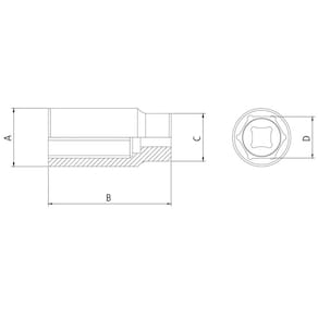 Os soquetes da Tramontina PRO são produzidos com sistema Hyper Drive que melhora o acoplamento do produto ao parafuso ou porca, reduzindo as tensões geradas no aperto e prolongando a sua vida útil. Escolha o tamanho e perfil ideal para a sua necessidade e mãos à obra. Orientações Um grande avanço na produção dos soquetes é a introdução do conceito "Hyper Drive". Este novo perfil melhora o acoplamento do soquete na porca ou parafuso, reduzindo as tensões geradas no aperto, prolongando a vida do soquete e do elemento de fixação.Soquete forjado em aço cromo vanádio e temperado. Acabamento cromado. DIN 3124. Os soquetes são submetidos a testes rigorosos de torque e de dureza para atender a norma DIN 1711-1.Afrouxar e apertar parafusos e porcas sextavados.As ferramentas são produzidas e testadas conforme normas específicas. Observações Use óculos, luvas e outros equipamentos de proteção individual (EPIs) de acordo com a tarefa a ser executada. Selecione o tamanho do soquete conforme a bitola do parafuso ou porca. Para operações com parafusadeiras pneumáticas ou elétricas, use soquetes de impacto. Inspecione os soquetes antes de sua utilização. Soquetes que apresentam trincas ou desgaste excessivo devem ser substituídos. - Armazene em local limpo e seco. Características Gerais EAN13 7891114133172 DUN14 17891114133179 NCM 8204.20.00 Peso Líquido 0,1150 kg. Peso Bruto 0,1212 kg. Metragem 0,000108 m³. Dimensões Embalagem (Compr. X Larg. X Alt.) 120x 50x 18 mm. Dimensões Produto (Compr. X Larg. X Alt.) 76x 22x 22 mm. Dimensão Extra A 20,3 mm. Dimensão Extra B 76,0 mm. Dimensão Extra C 22,0 mm. Dimensão Extra D 14,0 mm.