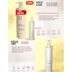 O Realinhamento Térmico Gold LUXO Souple Liss proporciona aos fios uma potente reestruturação capilar, gerando cabelos mais bonitos, saudáveis e cheios de vida.