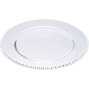 Sousplat com detalhes em bolinha de vidro sodo cálcico, tamanho de 31.5 cm, linha bolinha, marca l'hermitage. O L'Hermitage é o fornecedor de sousplats para sua casa. Descubra a nossa gama de produtos.
