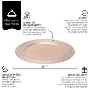 Este Sousplat é ideal para confortar o prato de refeição de seu convidado, evitando que fique escorregando na mesa. Além disso, é um ótimo acessório de decoração;