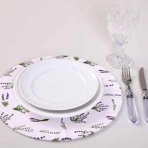 Sousplat Estampado Allegra 2 Peças Capa 100% Poliester e Base MDF 35cm Diâmetro.