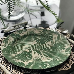 Apresentamos o Sousplat Palm Beach Estampado Verde - 33cm, o item que elevará o luxo em sua casa com nosso Sousplat Clássico!