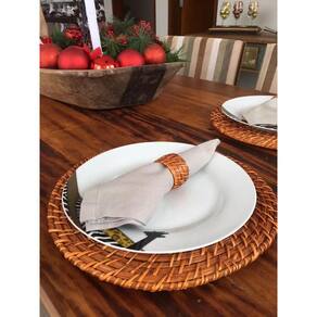 Sousplat Rattan Claro Sirva com elegância e garanta a segurança dos seus convidados. O sousplat evita manchas e marcas na sua mesa ou bancada, torna o manuseio dos pratos mais seguro e enche o seu jantar de glamour. O produto é resistente e fácil de limpar. Seu design clássico se adapta às reuniões mais formais e aos jantares mais descontraídos. O produto tem 33cm de diâmetro e pode ser Utilizado para pratos de diversos tamanhos. Tamanho da Embalagem:35cm x 35cm x 5cm Peso: 300gr Cor: Rattan Claro Marca: Não Informado