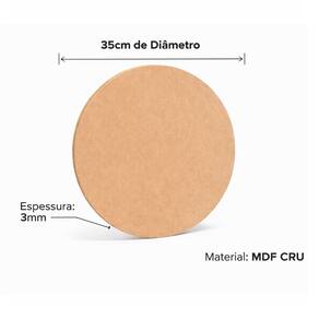 Características do produto: - Material: MDF CRU - Diâmetro: 35 cm - Espessura: 3 mm - Formato: Redondo - Cor: Natural do MDF