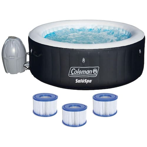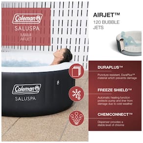 BANHEIRA DE HIDROMASSAGEM INFLÁVEL: A banheira de hidromassagem inflável Coleman SaluSpa é feita para até 4 pessoas e aquece rapidamente a relaxantes 40 graus Celsius com 60 jatos de ar circundantes Isenção de responsabilidade: este spa não pode ser em temperaturas inferiores a 4 graus Celsius.