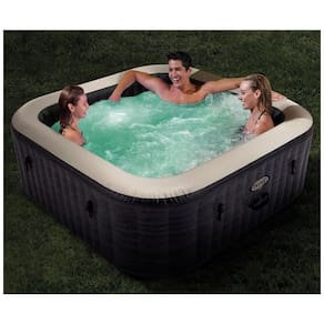 A banheira de hidromassagem redonda inflável para 6 pessoas, de aproximadamente por , possui 2 apoios de cabeça, permitindo que você relaxe com estilo com o toque de um botão.