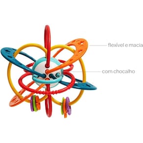 O Space Ball é perfeito para entreter e desenvolver os sentidos do bebê e massagear a gengiva. Macio e com arcos flexíveis, estimula o tato, auxiliando o pequeno a descobrir novas formas. É leve, fácil de segurar e possui som de chocalho, ideal para atrair a atenção!
