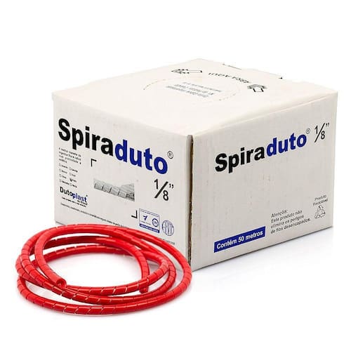 Com o objetivo de proteger os fios e cabos, o Spiraduto 1/8 permite várias composições, além de oferecer uma isolação mais segura ao seu sistema de cabeamento. Muito utilizado em fiação de computadores, sistemas de circuito interno de câmeras, painéis de televisão, home theather, entre outros.