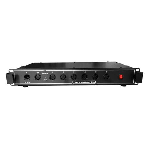 O Splitter converte sinais digitais DMX512 em sinais de saida DMX512 idênticas de acordo com a quantidade de saídas do modelo adquirido. Com o uso do Splitter teremos cópias exatas do sinal de entrada. Mantendo o sinal estável e isolando-o. Os circuitos de entrada e saída são totalmente isolados exceto a entrada de sinal e a saída LINK , com fontes de alimentação separadas, internamente o sinal é distribuido por meio de opto-isoladores. Faz-se necessário o uso do Splitter quando temos uma instalação onde encontramos qualquer dos requisitos a seguir: Um elevado numero de equipamentos DMX em uma mesma linha O numero recomendado de equipamentos em uma linha DMX é 32 . Grande distância entre equipamentos ou grupo de equipamentos DMX a máxima distancia recomendada para uma linha DMX é 50 Mts . Necessidade de isolar o controlador mesa dos equipamentos e isolar os equipamentos entre si. Separação de um sinal DMX, quando teremos então uma linha específica para cada tipo de equipamento Dimensões: Altura: 6,5 cm Largura: 48,5 cm Profundidade: 25 cm Peso: 03 kg