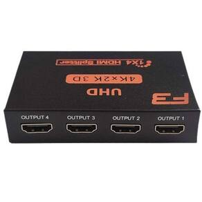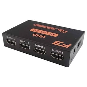 Suporte 2k 4K 60hz, resolução de até 1080p / 4k 2k, desempenho de excelência. Caixa de metal Portas: conector HDMI 1x4 e 1 conector de alimentação Suporte ao formato de vídeo: Resolução HDMI: 24/50 / 60fs / 1080P / 1080i / 720P / 576P / 576i / 480P / 480i Com função de amplificador de sinal. Com adaptador de energia Protocolo HDCP 1.2 compatível. Suporta CEC. Suporta cores profundas de 30 bits, 36 bits. Suporta Blue-Ray 24/50 / 60fs / HD-DVD / xvYCC Suporte de entrada de até 15 metros de comprimento de cabo padrão AWG 26HDMI 1.3. Corrente de trabalho máxima: 600mA Entrada do formato do adaptador de energia: CA 50Hz 60Hz 110-240V; Saída DC5V / 1A Cor: preto Taxa máxima de transmissão: 6.75gbps