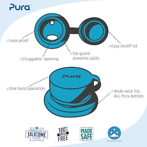 Tampa esportiva de silicone Pura Sport Big Mouth — sem plástico, à prova de vazamentos, de grau médico, serve para todos os frascos Pura — Aqua