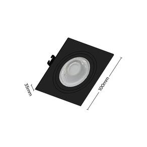 Dimensões AxLxP (mm): 35x100x100;Material: Termoplástico Proshield UV;Garantia: 5 anos junto ao fabricante;Grau de Proteção: IP 20;Lâmpada Inclusa: Não;Lâmpada Indicada: MR16;Local de Uso: Interno;Número de Lâmpadas: 1;Soquete: GU10;Nicho para Instalação: 90x90x80*mm *a profundidade pode variar de acordo com a lâmpada utilizada;Formato: Quadrado;Voltagem: Bivolt;Foco Orbital: 360;Compatibilidade: Utilizar somente com lâmpada LED;Sistema Click: Substitui a lâmpada sem remover o embutido;