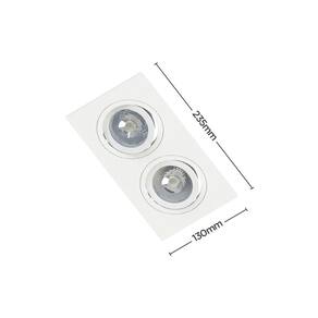 Especificações gerais do produto Dimensões AxLxP (mm): 35x235x130Material: Termoplástico Proshield UVGarantia: 5 anos junto ao fabricanteReferência: SE-330.3174 (Jet Black); SE-330.3173 (Branco)Lâmpada Inclusa: NãoLâmpada Indicada: PAR20Local de Uso: InternoNúmero de Lâmpadas: 2Soquete: E27Nicho para Instalação: 115x220x115mm *a profundidade pode variar de acordo com a lâmpada utilizada.Formato: RetangularVoltagem: BivoltFoco Orbital: 360°Compatibilidade: Utilizar somente com lâmpada LEDPlano: SimSistema Click: Substitui a lâmpada sem remover o embutido O que acompanha o produto 1 Spot