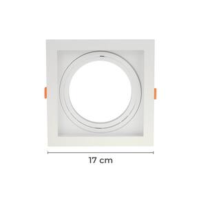 Especificações Gerais do Produto: Dimensões AxLxP (mm): 17x17 Material: Policarbonato Garantia: 1 ano junto ao fabricante Grau de Proteção: IP 2 Lâmpada Inclusa: Não Lâmpada Indicada: AR111 Local de Uso: Interno Número de Lâmpadas: 1 Soquete: GU1 Nicho para Instalação: 16x16x43,5mm Formato: Quadrado Voltagem: Bivolt
