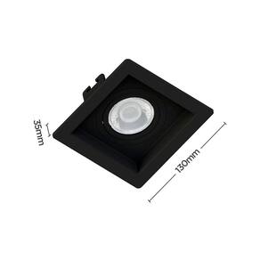 Dimensões AxLxP (mm): 35x130x130;Material: Termoplástico Proshield UV;Garantia: 5 anos junto ao fabricante;Grau de Proteção: IP 20;Lâmpada Inclusa: Não;Lâmpada Indicada: PAR20;Local de Uso: Interno;Número de Lâmpadas: 1;Soquete: E27;Nicho para Instalação: 115x115x125*mm *a profundidade pode variar de acordo com a lâmpada utilizada;Formato: Quadrado;Voltagem: Bivolt;Foco Orbital: 360°;Compatibilidade: Utilizar somente com lâmpada LED;Sistema Click: Substitui a lâmpada sem remover o embutido;