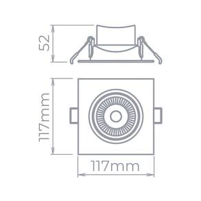 Dimensões AxLxP (mm): 52x117x117Material: ABSGarantia: 2 anos junto ao fabricanteNicho para Instalação: Ø 90mm (3.5/8")Dimerizável: NãoFormato: QuadradoDirecionável: SimFrequência: 50/60 HzÂngulo de Abertura: 30°Fator de Potência: >0,4Potência: 7WVida Útil: 25.000 horasModelo/Tecnologia: LED EmbutidoIRC (Índice de Reprodução de Cor): >80Voltagem: BivoltPlano: Sim