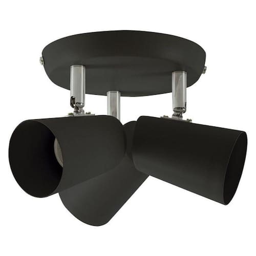 Spot De Sobrepor New Short Triplo Direcionável 3xE27 Preto Llum - Características Gerais do Produto: Dimensões AxLxP cm : 13,5 x 15 x 15 Produzido em: Aço Voltagem: 110V 220V Cor Acabamento: Preto Fosco Potência: 300W Potência Máxima por soquete : 100W Para Uso em Soquete: E27 Formato: Circular Garantia: 6 meses junto ao fabricante Aplicação: Sobrepor Acompanha Lâmpada: NãoAcompanha o produto: 01 Spot Triplo 01 Kit de InstalaçãoGarantia: Este produto possui garantia junto ao fabricante contra defeitos de fabricação Marca: Bronzearte Llum