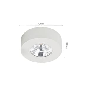 Spot De Sobrepor Nordecor Asis Redondo Led 5w Bivolt Branco 3000k Luz Amarela Dimensões AxLxP (mm): 26x73x73Material: PolicarbonatoGarantia: 1 ano junto ao fabricanteReferência: 6169 (Branco 3K)Local de Uso: InternoGrau de Proteção: IP 2Formato: RedondoVoltagem: BivoltPotência: 5WÂngulo de Abertura: 5Fluxo Luminoso: 3 lúmensIRC (Índice de Reprodução de Cor):> 7Fator de Potência:> ou = ,5Temperatura da Cor: 3K - Branco QuenteModelo/Tecnologia: LED Embutido O que vem na Caixa1 Spot