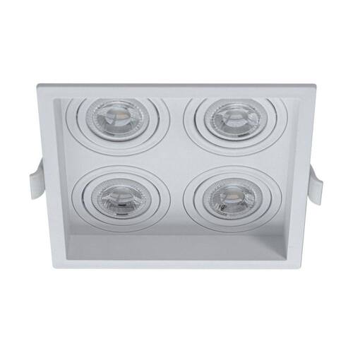 Embutido Recuado Quádruplo para 4 Lâmpadas Minidicroica com soquete GU10, produzido em Proshield UV, um composto termoplástico de engenharia com aditivo especial para proteção ultravioleta, desenvolvido pela Save Energy.