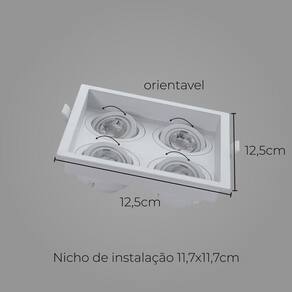 ESPECIFICAÇÕES TÉCNICAS: Marca: Save Energy Modelo: SE-330.3127 Cor: Branco Material: Proshield UV Tipo de Soquete: GU10 Número de soquetes: 4 Tipo de lâmpada que utiliza: Minidicroica Voltagem: Bivolt Não Dimerizável Ângulo de Abertura: 360° Sistema Click Indicado para uso: Interno Largura: 12,5 cm Altura: 12,5 cm Profundidade: 3,5 cm Nicho de instalação: 11,7 x 11,7 x 6,5 cm Peso líquido em gramas: 130 g Garantia: 2 anos