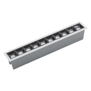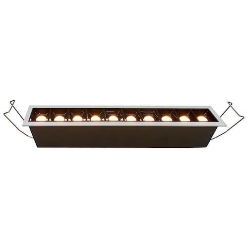 IRC: 90 Angulo de Abertura: 30 UGR: 16 Temperatura de cor: 2700K - Branco Quente Fluxo luminoso: 1320lm Tensão: Bivolt Potência: 20W Cor: Borda Branca com corpo Preto Frequência: 60Hz Fator de Potência: 0.9 Corrente Máxima: 0,055A Grau de Proteção: IP20 Temperatura de Operação: 0C a 40C Peso: 399g Dimensões: 28x4,5x4,9cm Nicho: 27,3x3,7cm Composição: Alumínio