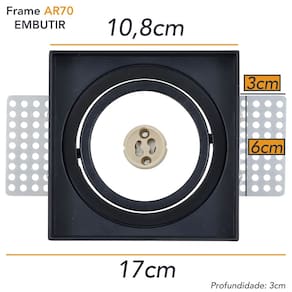 #ESPECIFICAÇÕES: Direcionável – Ajuste o foco da luz para destacar objetos, paredes ou criar efeitos personalizados. No Frame (Sem Moldura) – Integra-se harmoniosamente ao ambiente, proporcionando um visual mais limpo e elegante. Compatível com Lâmpadas AR70 GU10 – Versatilidade para escolher a temperatura e intensidade da luz ideal. Ideal para Diversos Ambientes – Perfeito para salas, corredores, lojas, escritórios e muito mais. Tensão: Bivolt (dependendo da lâmpada utilizada).