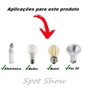 Alguns detalhes do produto Formato Redondo Material alumínio Tipo de soquete: E-27 porcelana Tipos de lâmpadas compatíveis: Bulbo Led até 12 w, Par-20 Led ou Halogênea, Fluorescente compacta espiral (20 w) ou tradicional (20 w), incandescente até 100 w, Retro filamento.