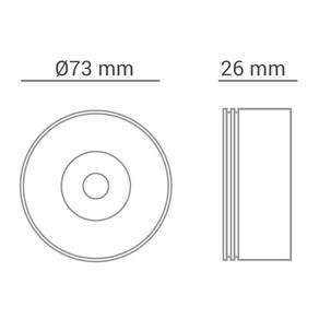 - fluxo luminoso: 320lm - abertura: 120° - potência: 5w - irc: 70 - tensão: 100 - 240v - frequência: 60hz - fator potência: 0.5 - corrente elétrica: 0.077a - temperatura de operação: - 40°c a 40°c - peso: 88g - dimensões: ø73 x 26mm - vida útil: 25.000h - proteção: ip20 - garantia: 1 ano