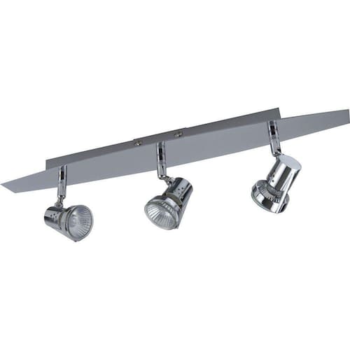 Spot trilho arandela noto triplo para led Spot trilho noto considerado uma peça técnica e funcional, luminária leve e fácil de instalar é indicada para salas, quartos, corredores, hall de entrada, cozinhas e escritórios. Seu material é metal cromado. Comporta 3 lâmpadas de soquete gu10 de led com potência de 7w não inclusas . Spot noto triplo cromado articulado de sobrepor. 3x led-gu10 não incluso. Produto montado. Medidas: l 52 cm - p 10 cm - h 12 cm. Bivolt x005fx000d Ean: 7898730071581