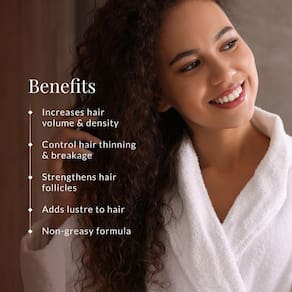 Detalhes: Este spray espessante de cabelo Forest Essentials foi desenvolvido para estimular o crescimento do cabelo e melhorar a densidade do cabelo. É um sérum de cabelo macio e sedoso, infundido com extratos herbais ayurvédicos eficazes de Bhringraj e Shikakai, que fortalecem os folículos pilosos, previnem a queda de cabelo e estimulam o crescimento do cabelo. A proteína do trigo dá brilho e restaura o volume do cabelo