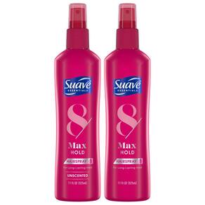 Suave Max Hold Hairspray 8 é o spray de cabelo sem aerossol definitivo para fixação, estilo e flexibilidade duradouros. Nosso pacote de 2 variedades inclui uma fórmula sem perfume e outra perfumada, ambas com reabastecimento de vitamina B5 e vitamina E.