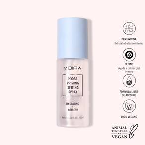 . . . MOIRA Hydra Priming Setting Spray é um spray de névoa fina leve para um acabamento naturalmente radiante que irá preparar e refrescar a pele enquanto atua como uma camada invisível para agarrar e definir a maquiagem o dia todo. Infundido com extrato de pepino, gel de aloe vera e pentavitina, este spray ajudará a fornecer um impulso instantâneo de hidratação para o acabamento perfeito e úmido. . - Livre de crueldade. - Vegano. - Sem parabenos. - Sem sulfatos. - Livre de ftalatos. - Sem glúten. - Sem álcool. . Como usar: 1. Agite bem antes de cada aplicação. 2. Segure o bocal a cerca de 12 a 17 cm da pele e aplique suavemente o produto uniformemente em toda a superfície da pele. Peso líquido: 9 ml. 100 ml. . . Lista de ingredientes. Ingredientes. . Água, glicerina, butilenoglicol, fenoxietanol, gel de aloe vera, PPG-26-Buteth-26, óleo de rícino hidrogenado PEG-40, EDTA dissódico, perfume, caprilicol glicol, isomerado de sacarídeo, extrato de fruta Cucumis Sativus, sorbato de potássio, benzoato de sódio, ácido cítrico id, Citrino de Sódio Sulfito de sódio.