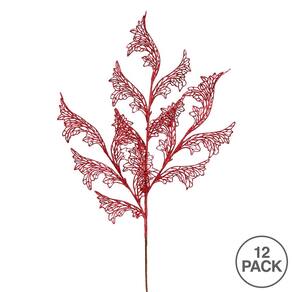 Spray artificial de Natal Vickerman 27" Burgundy Glitter Coral Bells Leaf Lace. Inclui 12 sprays por pacote.
