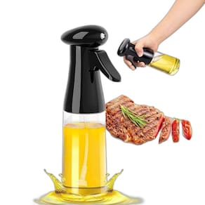Spray De Óleo Azeite Vinagre Vidro 200ml Qualidade O Frasco Spray de Vidro e Plástico com suporte é um produto versátil e elegante que facilita a aplicação de azeite, vinagre, óleo e outros líquidos em suas refeições.